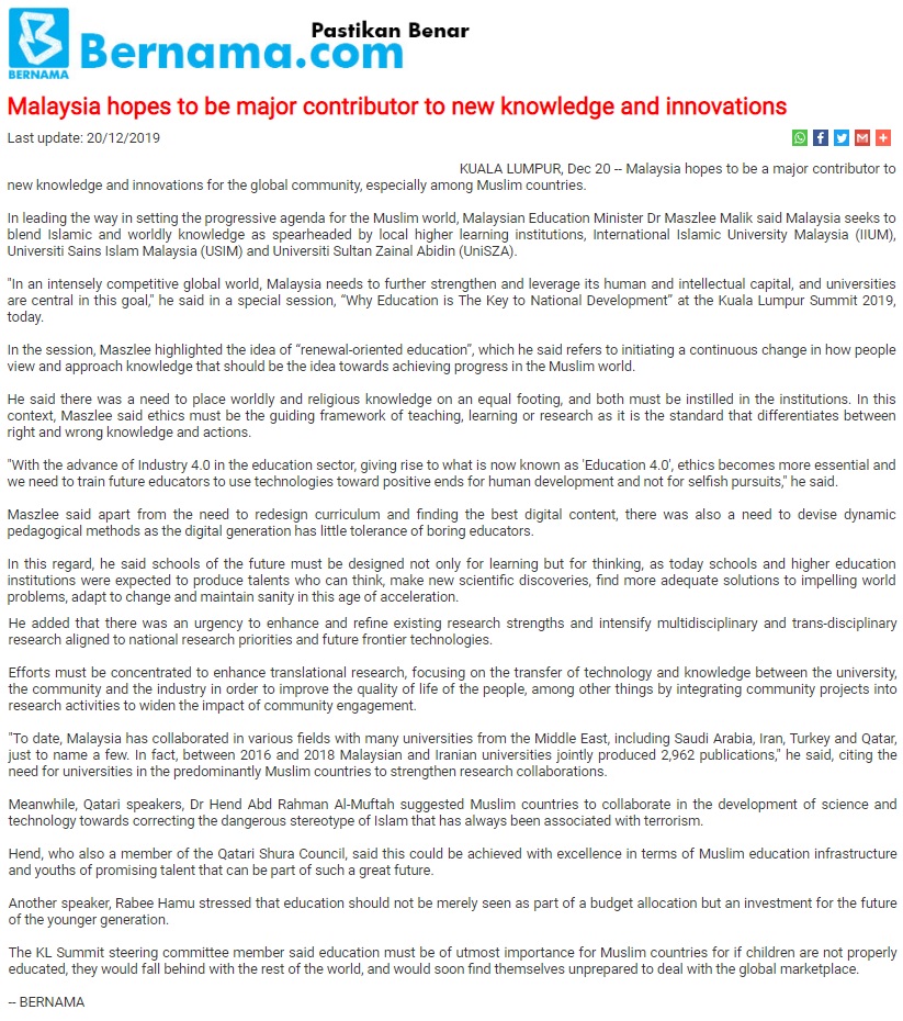 Malaysia Hopes To Be Major Contributor To New Knowledge & Innovations