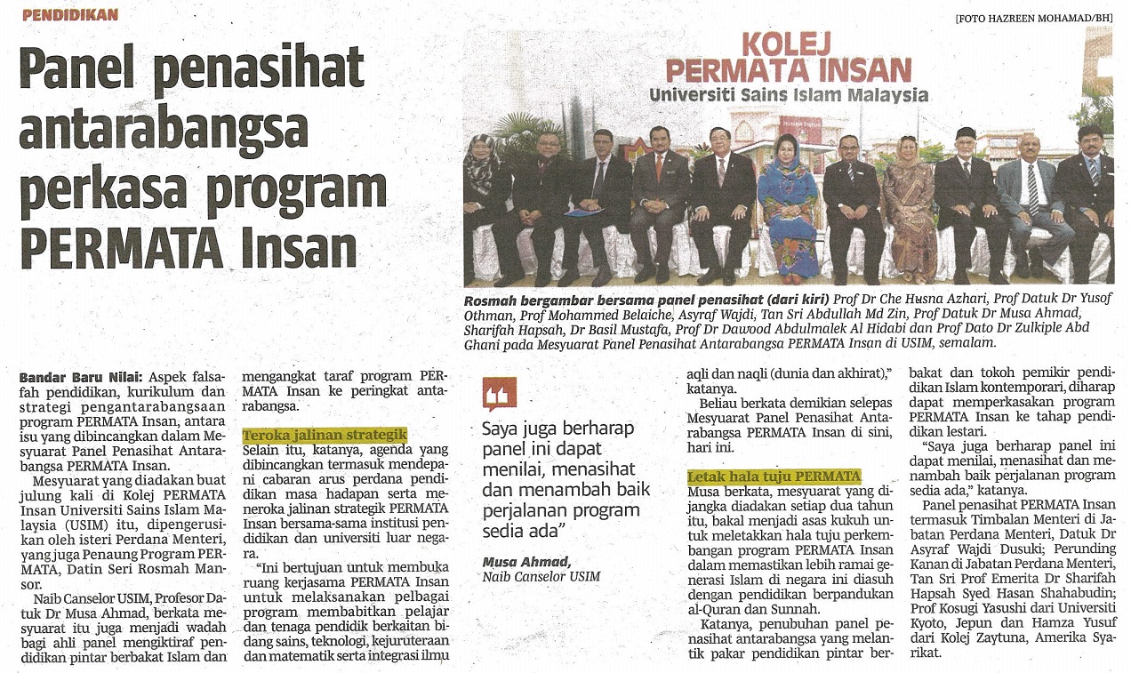 BERITA HARIAN - PANEL PENASIHAT ANTARABANGSA PERKASA PROGRAM PERMATA INSAN, 13 OKTOBER 2017, MS 18.jpg