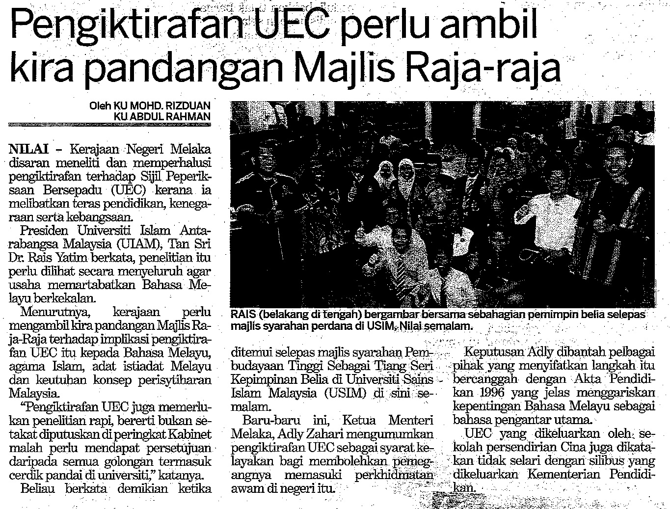 Pengiktirafan UEC Perlu Ambil Kira Pandangan Majlis Raja-Raja
