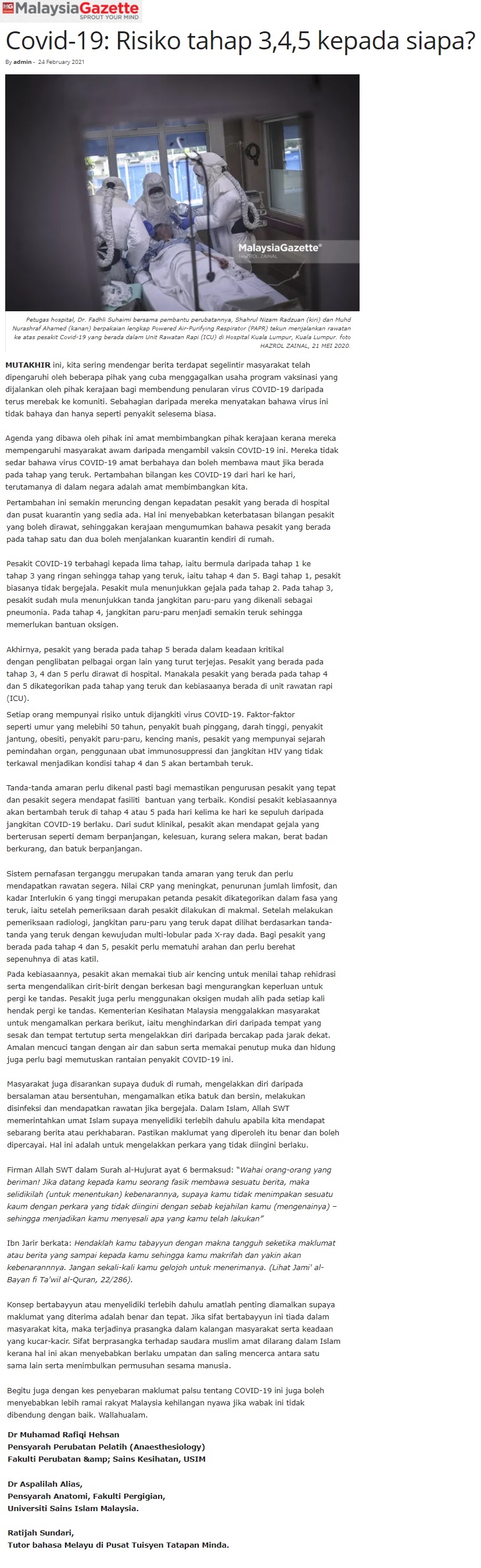 Covid-19 : Risiko Tahap 3 - 5 Kepada Siapa