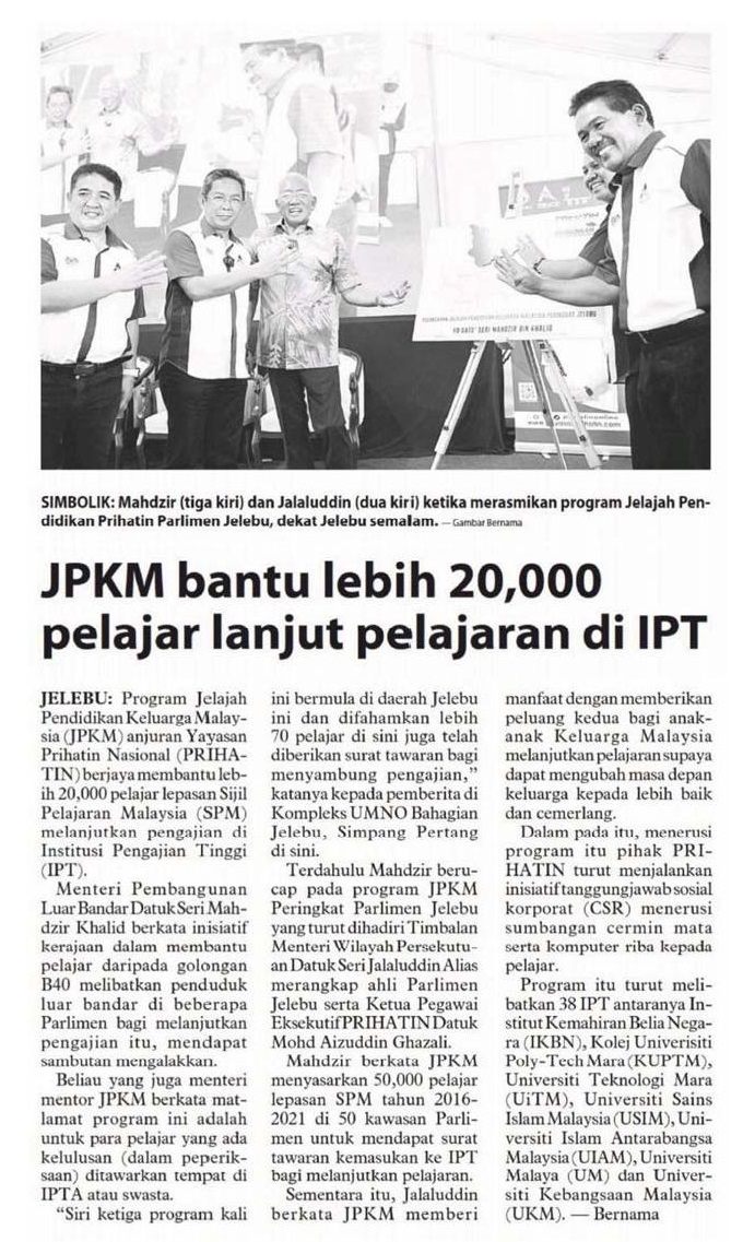 JPKM Bantu Lebih 20,000 Pelajar Lanjut Pelajaran Di IPT