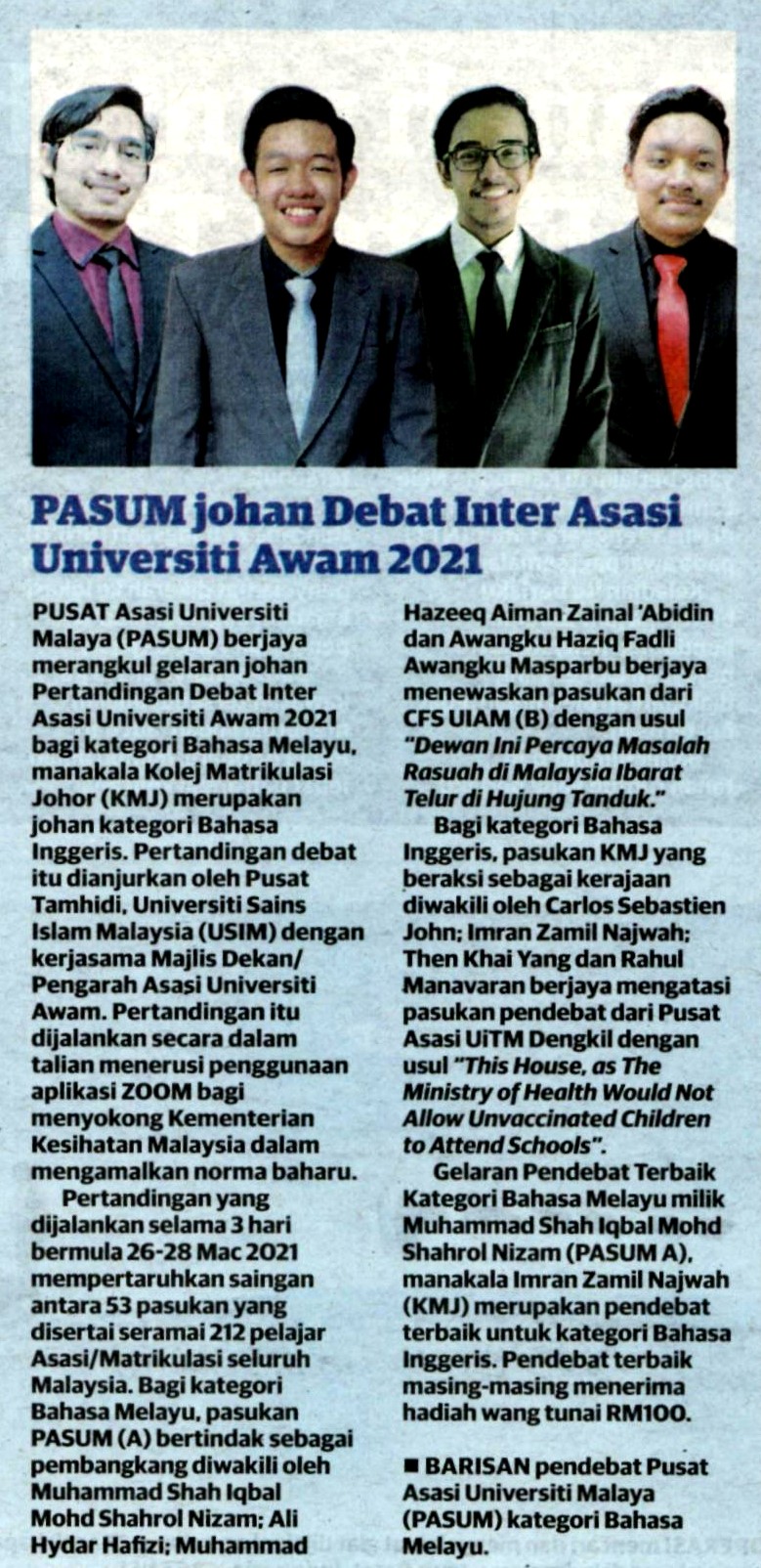 PASUM Johan Debat Inter Asasi Universiti Awam