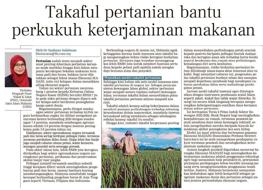 Takaful pertanian bantu perkukuh keterjaminan makanan