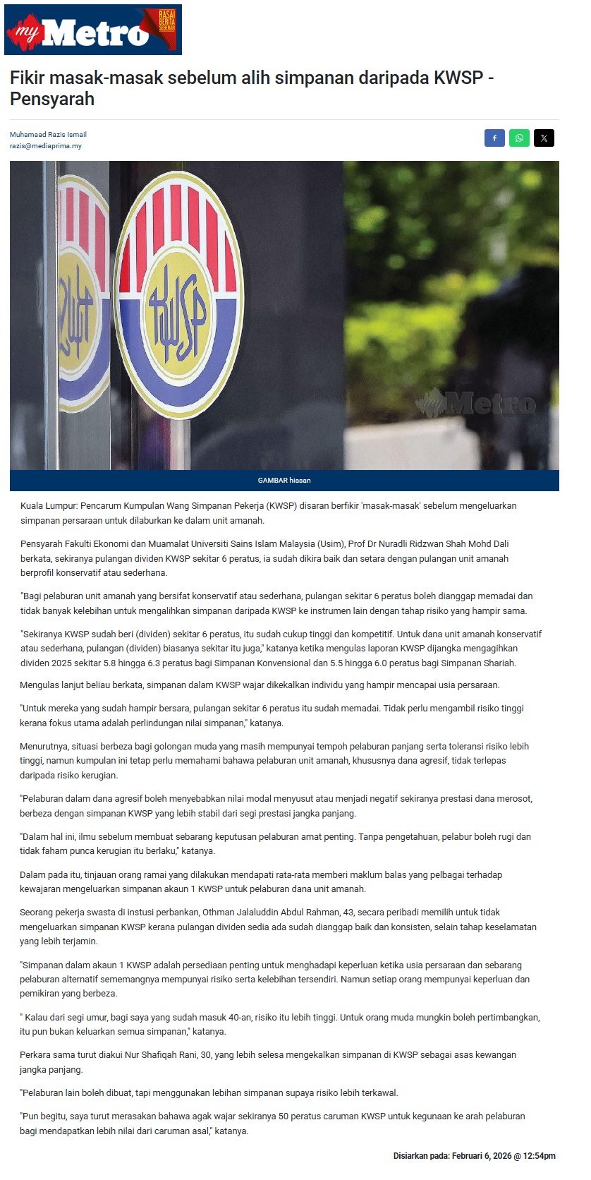 FIKIR MASAK-MASAK SEBELUM ALIH SIMPANAN DARIPADA KWSP