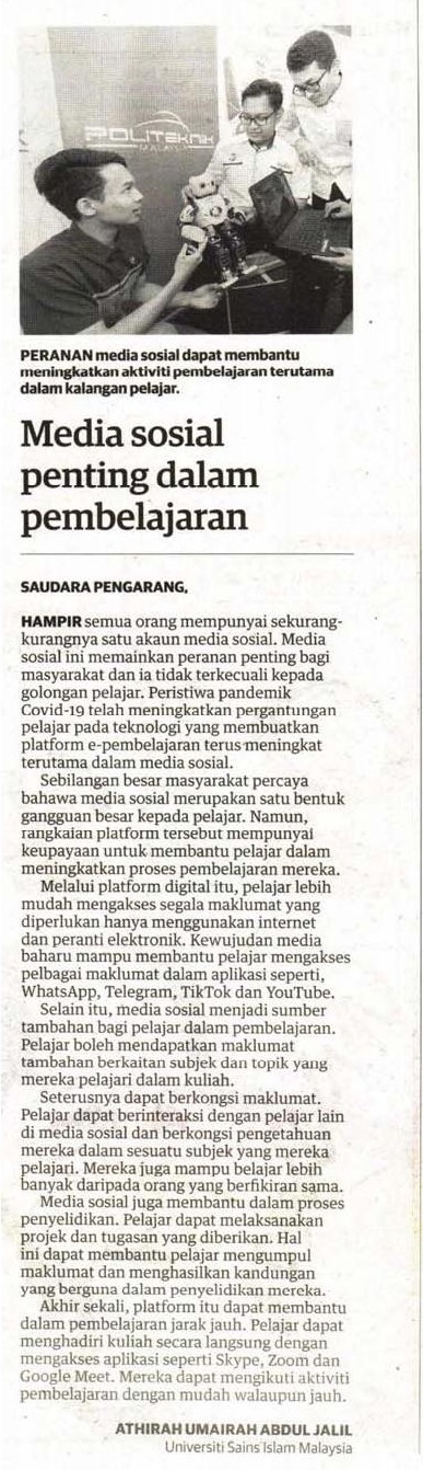 Media sosial penting dalam pembelajaran
