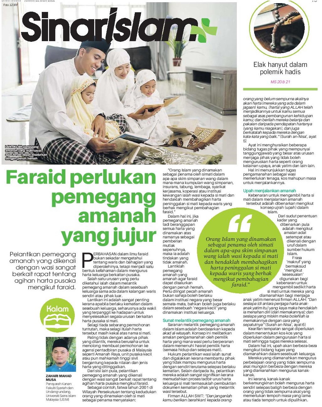 - SINAR HARIAN 22 JULAI 2022 MS 19 FARAID PERLUKAN PEMEGANG AMANAH YANG JUJUR.jpg