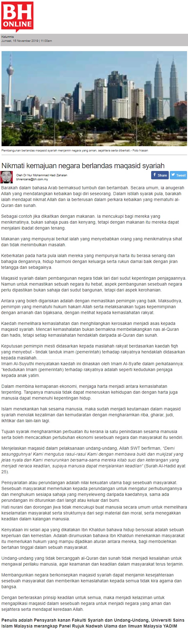 Nikmati Kemajuan Negara Berlandaskan Maqasid Syariah