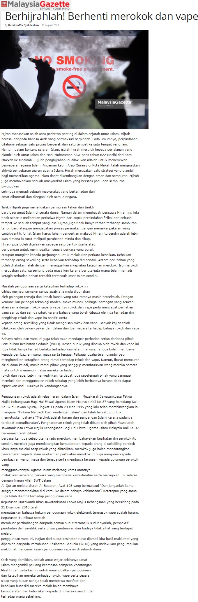 Berhijrahlah, Berhenti Merokok Dan Vape