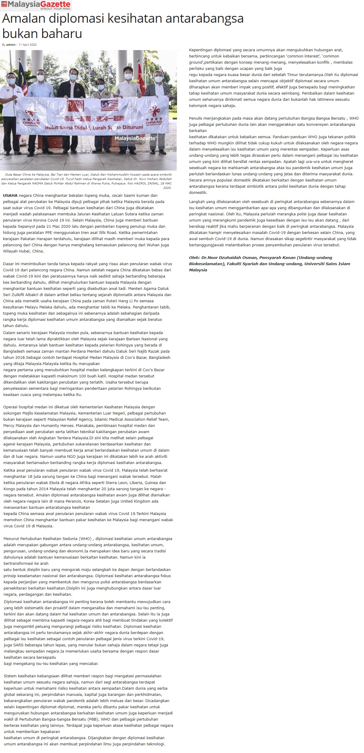 Amalan Diplomasi Kesihatan Antarabangsa Bukan Baharu