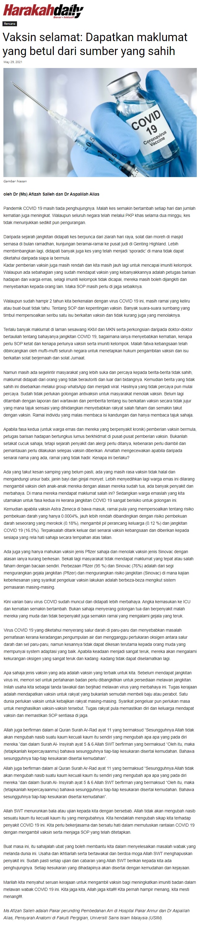 Vaksin Selamat ; Dapatkan Maklumat Yang Betul Dari Sumber Yang Sahih