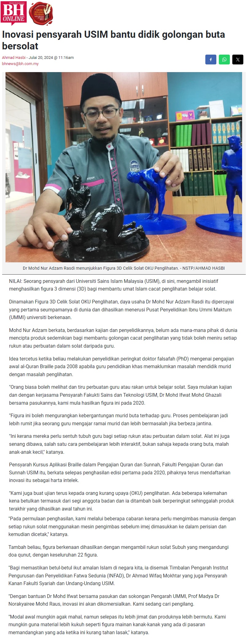 Inovasi pensyarah USIM bantu didik golongan buta bersolat