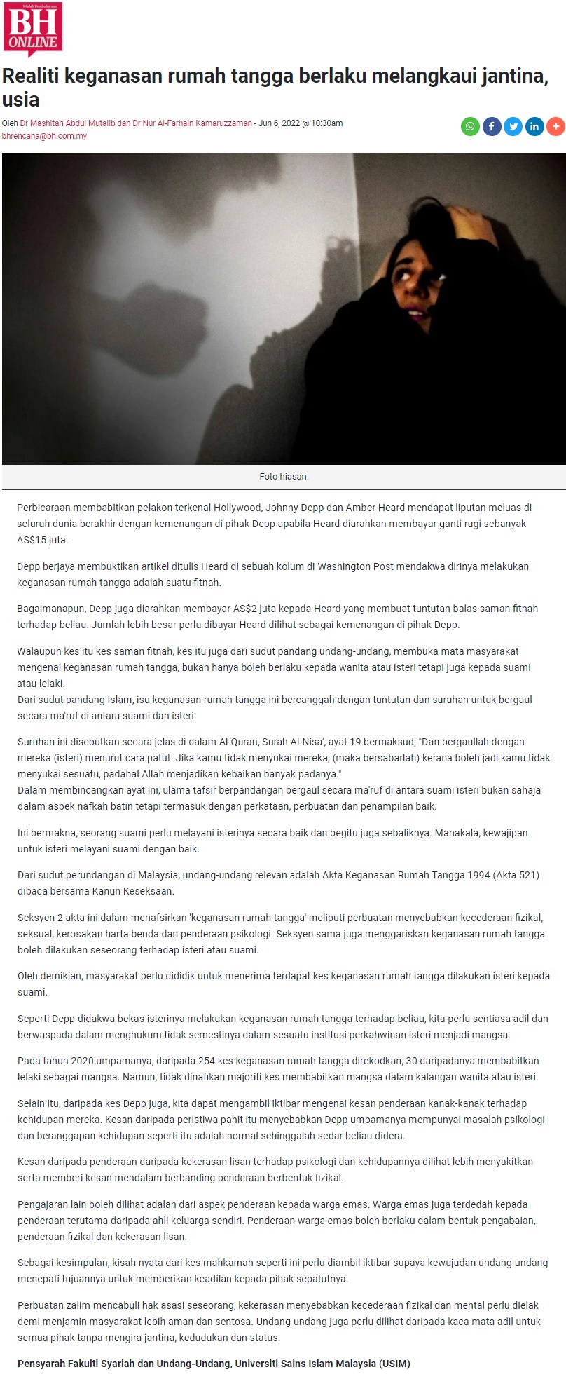 Realiti Keganasan Rumah Tangga Berlaku Melangkaui Jantina, Usia