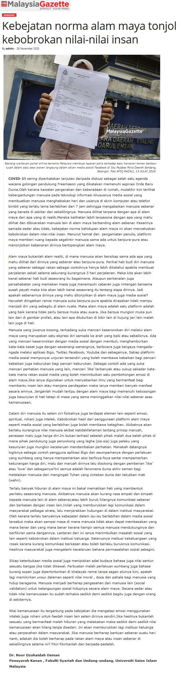 - MALAYSIA GAZETTE 26 NOVEMBER 2020 KEBEJATAN NORMA ALAM MAYA TONJOL KEBOBROKAN NILAI INSAN.jpg