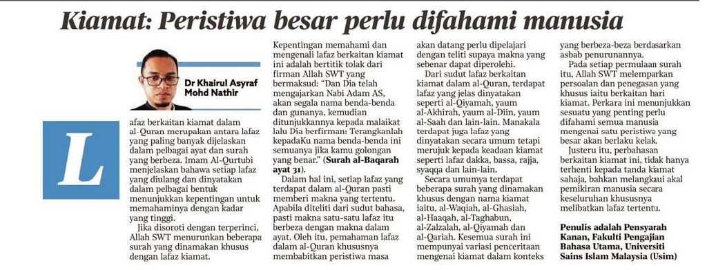 Kiamat : Peristiwa Besar Perlu Difahami Manusia