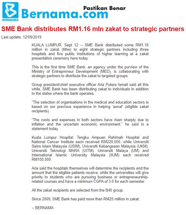 SME Bank Distributes RM1.16 Million Zakat To Strategik Partners