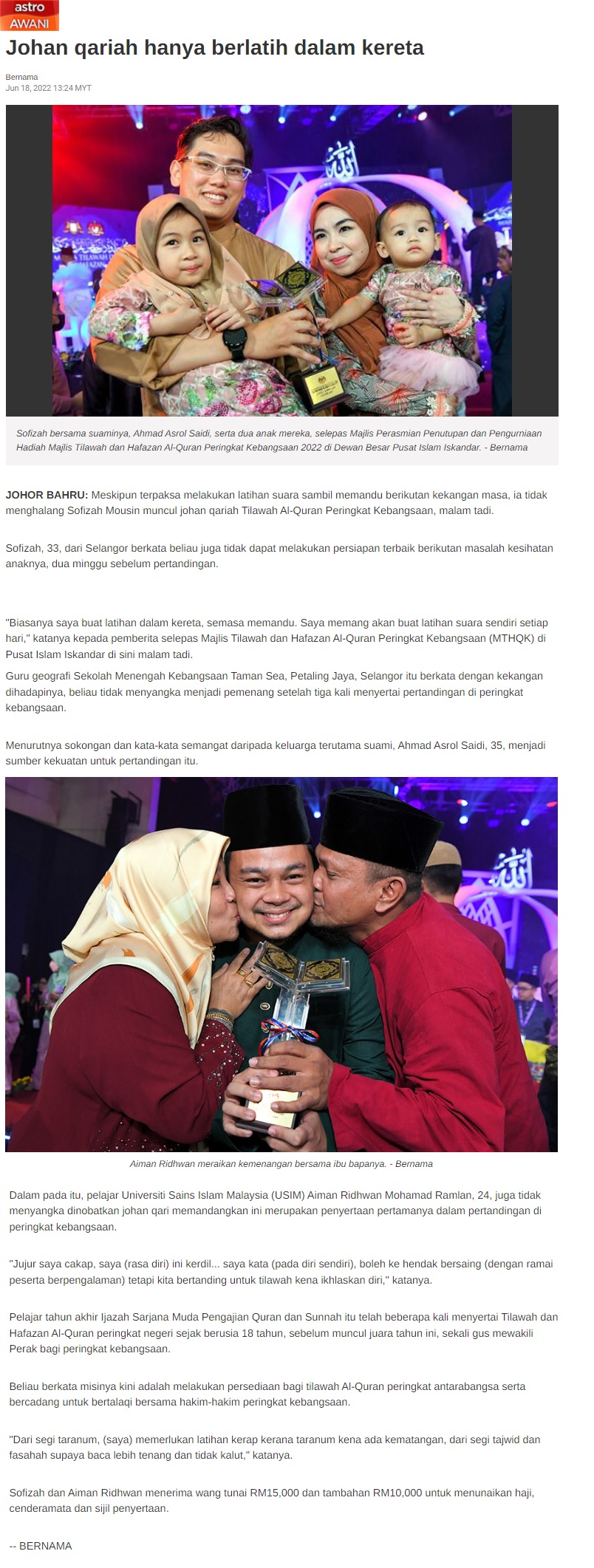 Johan Qariah Hanya Berlatih Sambil Memandu