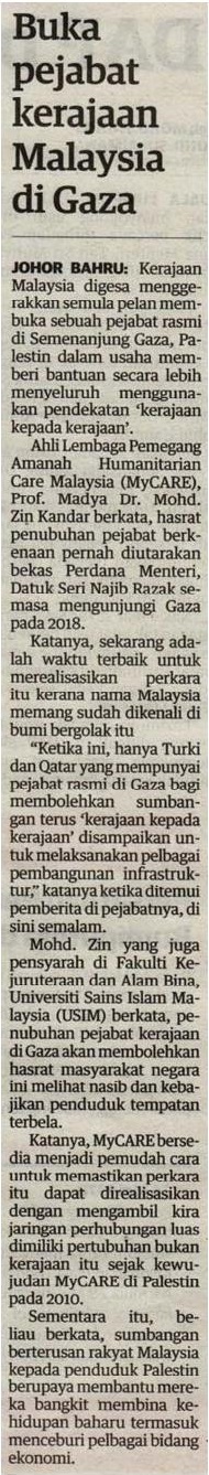 Buka Pejabat Kerajaan Malaysia Di Gaza