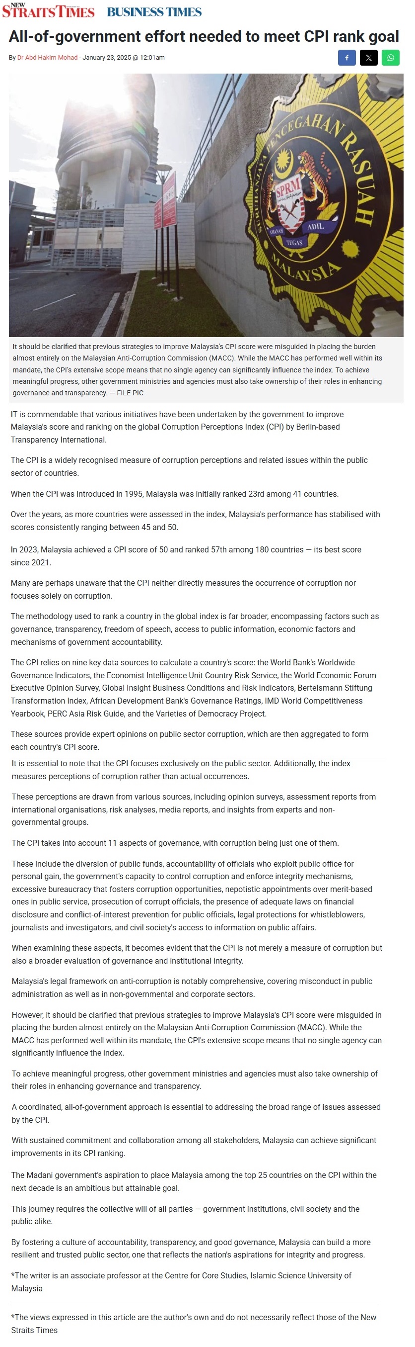 ALL OF GOVERNMENT EFFORT NEEDED TO MEET CPI RANK GOAL