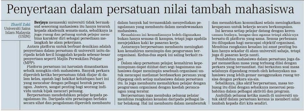 Penyertaan Dlam Persatuan Nilai Tambah Mahasiswa