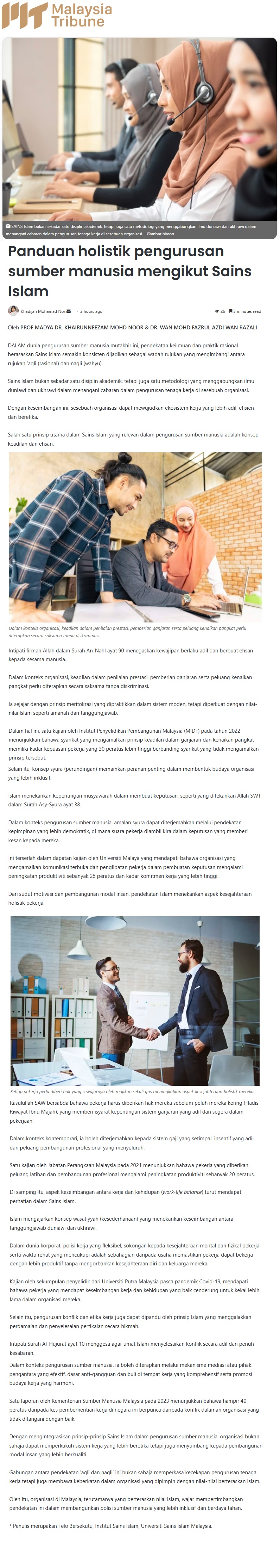 Panduan holistik pengurusan sumber manusia mengikut Sains Islam