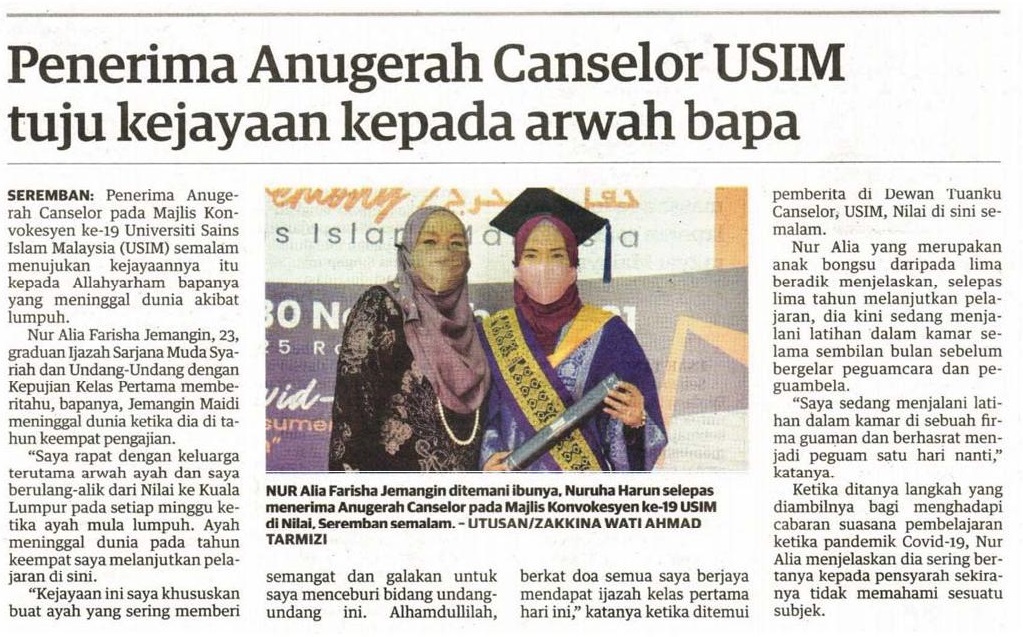 Penerima Anugerah Canselor USIM Tuju Kejayaan Kepada Arwah Bapa