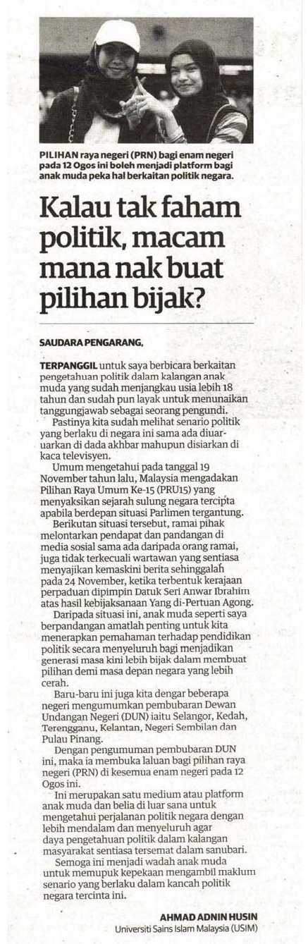 - UTUSAN MALAYSIA 20 JULAI 2023 MS 18 KALAU TAK FAHAM POLITIK, MACAM MANA NAK BUAT PILIHAN BIJAK.jpg