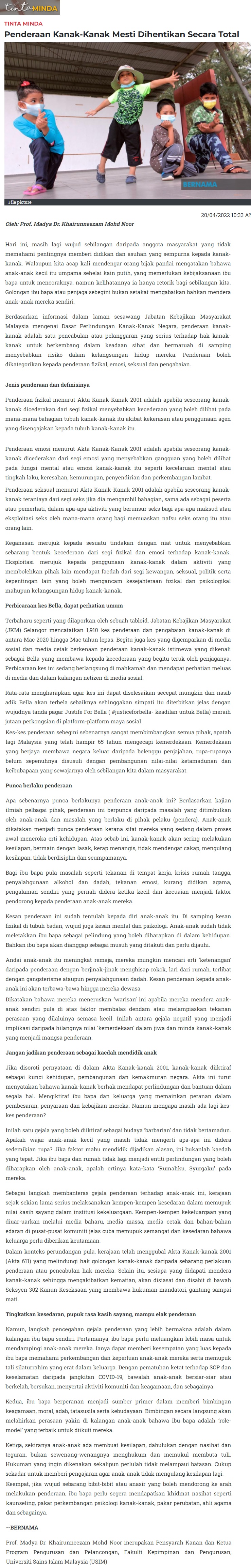 Penderaan Kanak-Kanak Mesti Dihentikan Secara Total