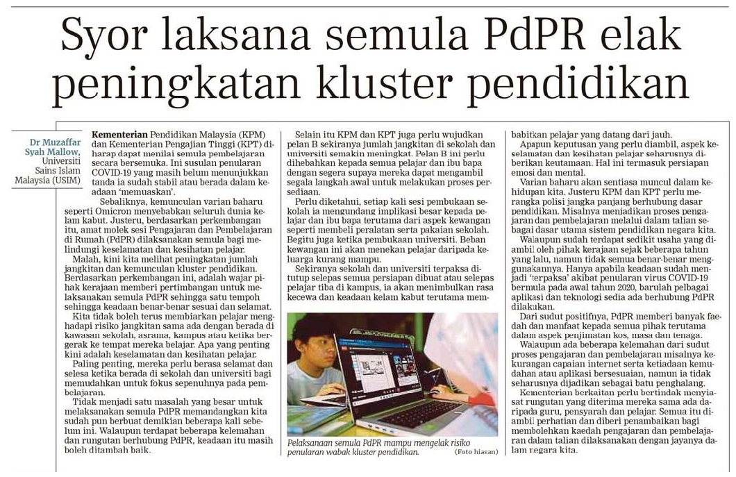 Syor Laksana Semula PDPR Elak Peningkatan Kluster Pendidikan