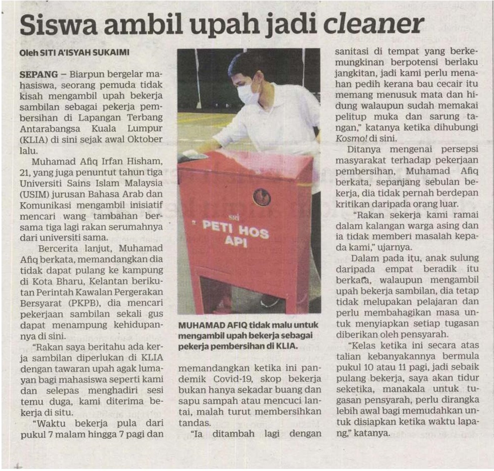 Siswa ambil upah jadi cleaner