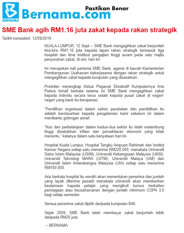 SME Bank Agih RM1.16 Juta Zakat Kepada Rakan Strategik