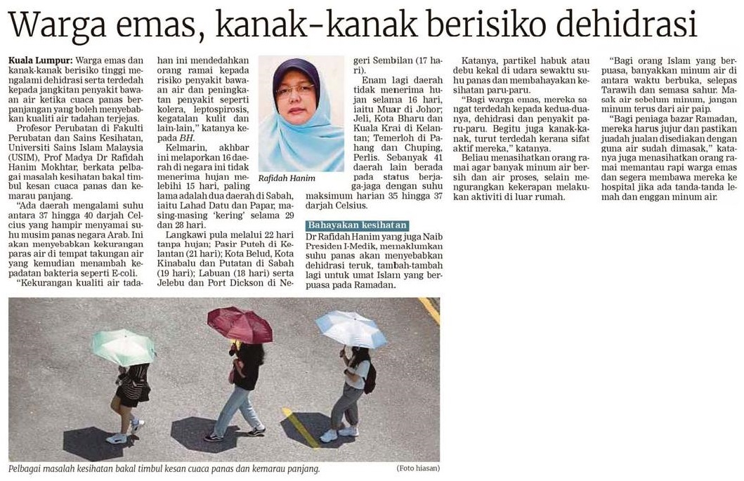 Warga emas, kanak-kanak berisiko dehidrasi