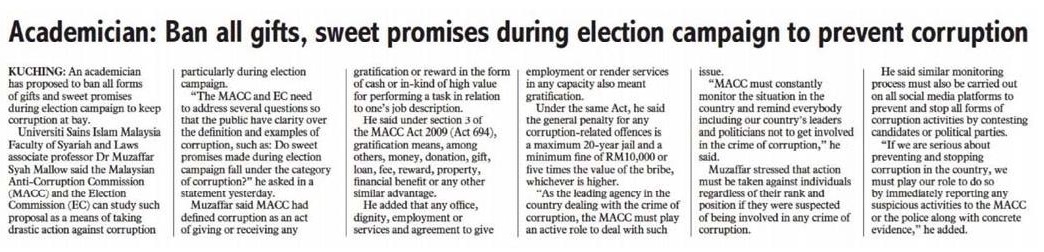 Ban all gifts, sweet promises during election campaign to prevent corruption