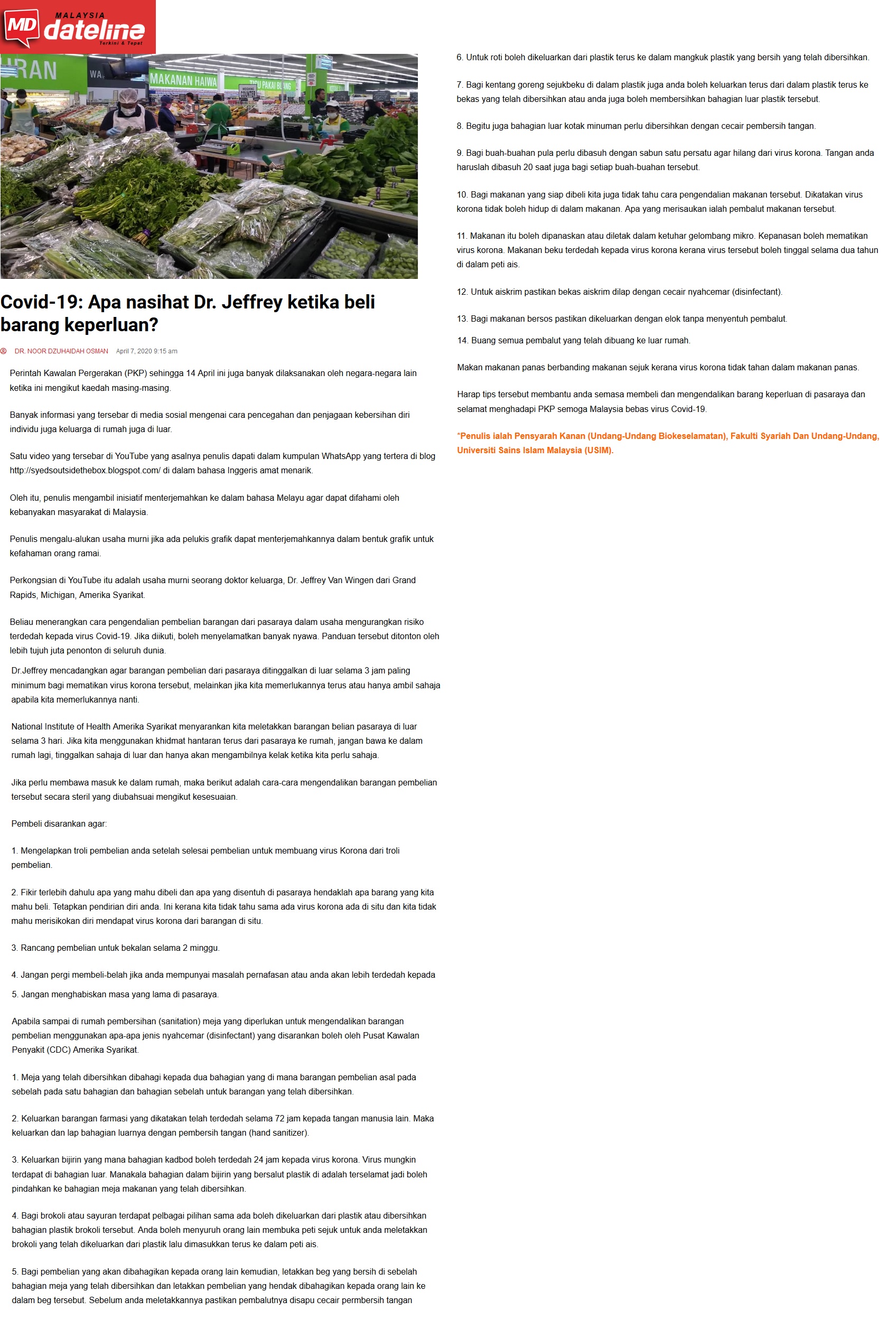 Covid-19 : Apa Nasihat Dr. Jefrey Ketika Beli Barang Keperluan