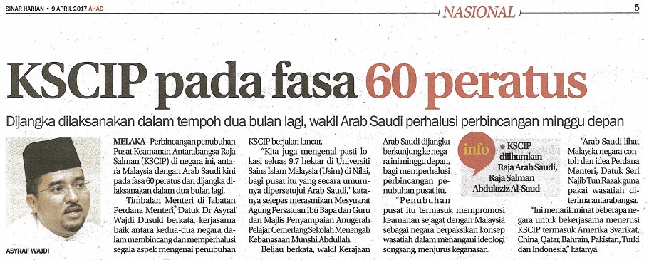 SINAR HARIAN - KSCIP PADA FASA 60 PERATUS, 9 APRIL 2017, MS 5.jpg