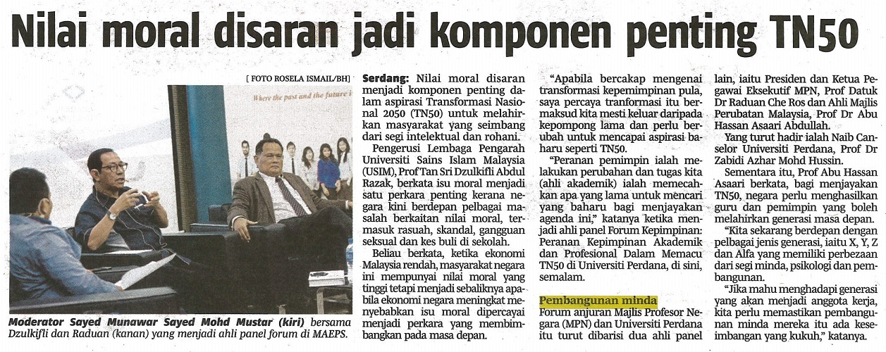BERITA HARIAN - NILAI MORAL DISARAN JADI KOMPONEN PENTING TN50, 21 DISEMBER 2017, MS 22.jpg