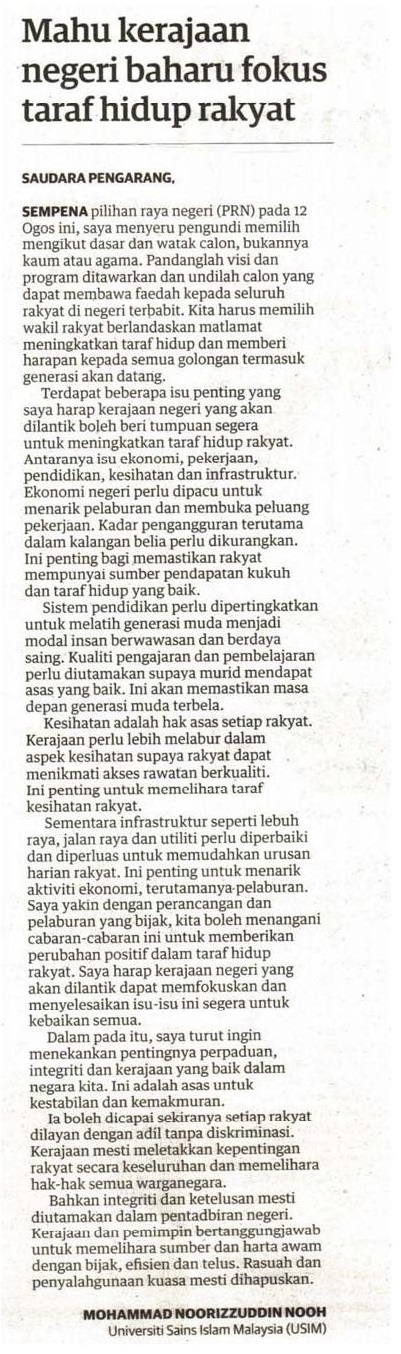 Mahu kerajaan negeri baharu fokus taraf hidup rakyat