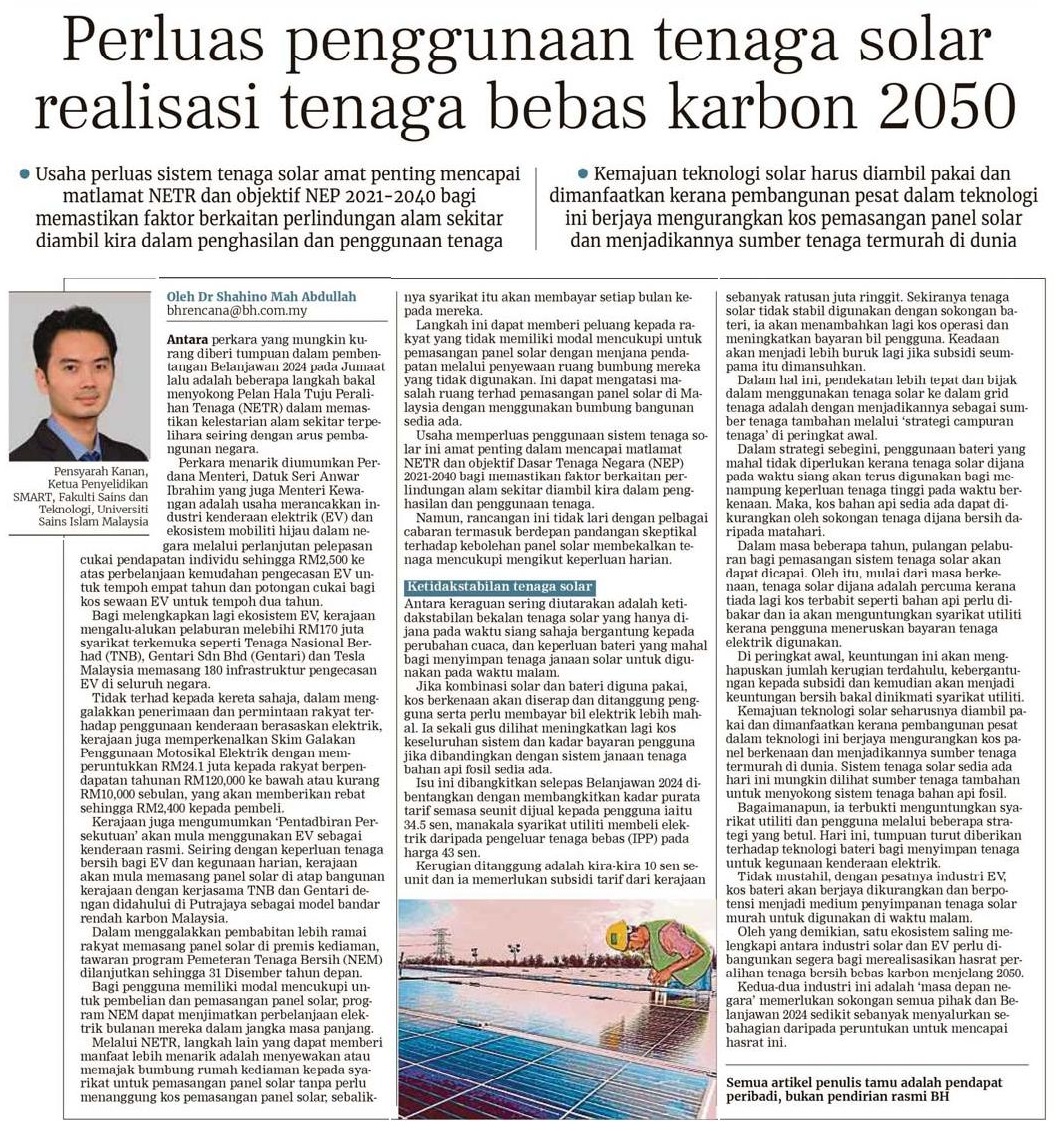 Perluas penggunaan tenaga solar realisasi tenaga bebas karbon 2050