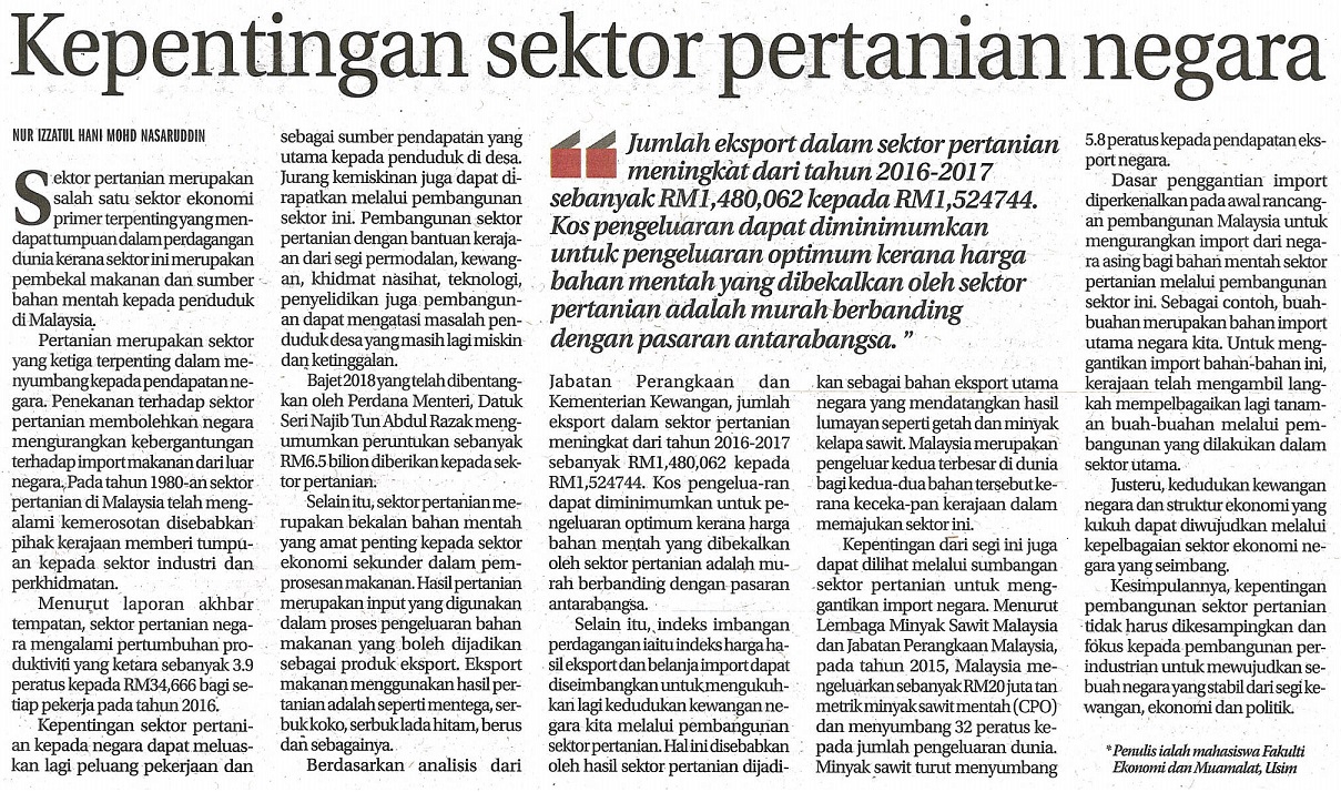 SINAR HARIAN - KEPENTINGAN SEKTOR PERTANIAN NEGARA, 13 FEBRUARI 2018, MS 16 (1).jpg