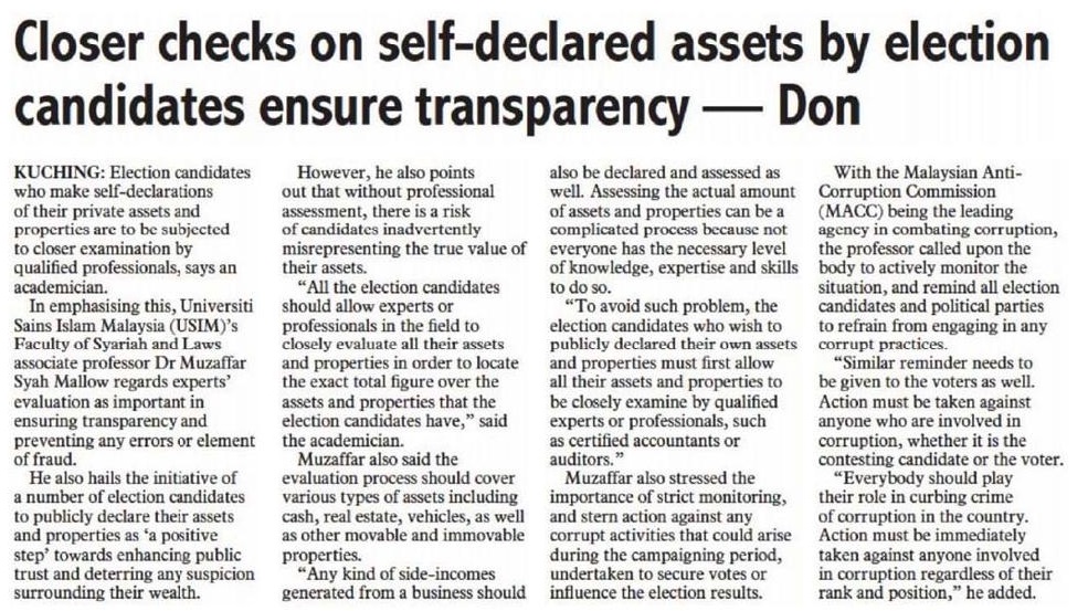 Closer checks on self-declared assets by election candidates ensure transparency