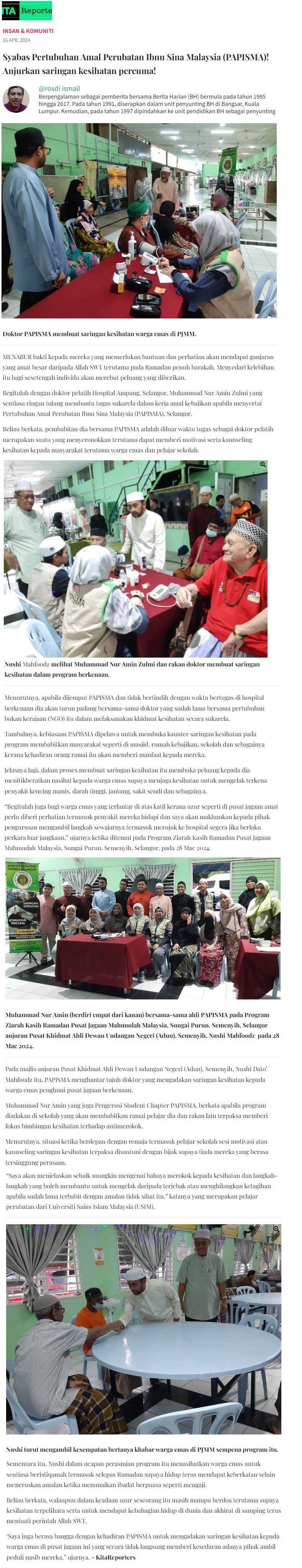 Syabas Pertubuhan Amal Perubatan Ibnu Sina Malaysia (PAPISMA)! anjurkan saringan kesihatan percuma