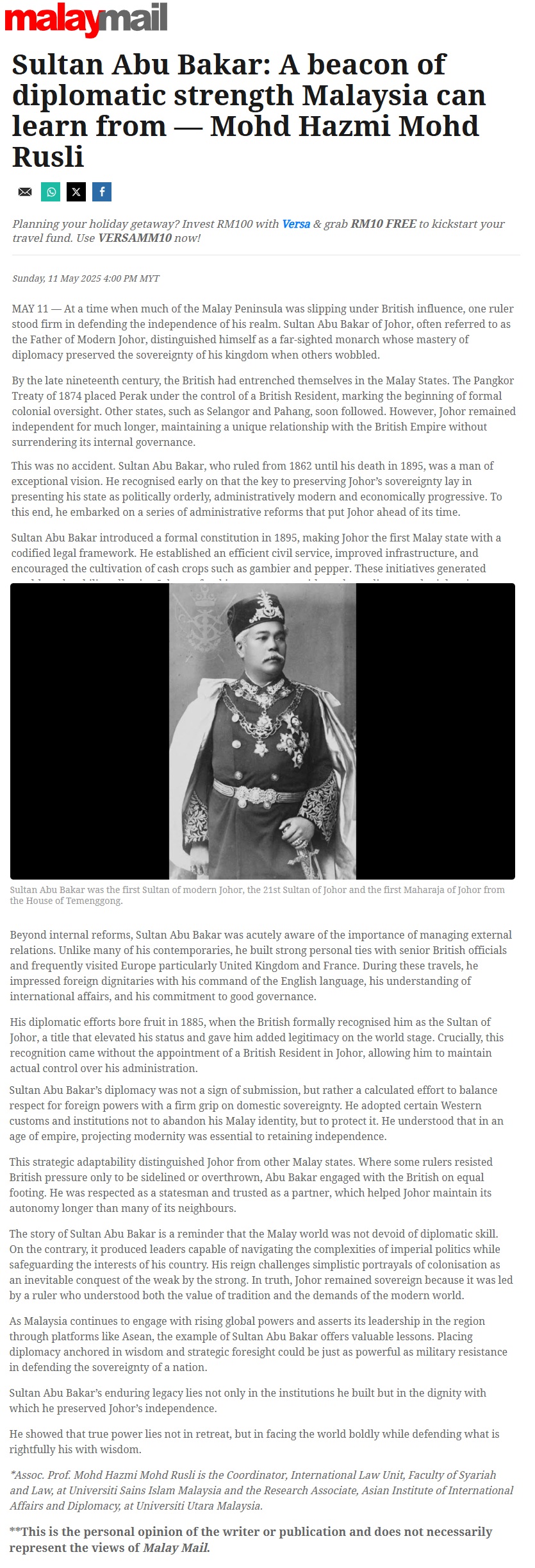 Sultan Abu Bakar: A beacon of diplomatic strength Malaysia can learn from
