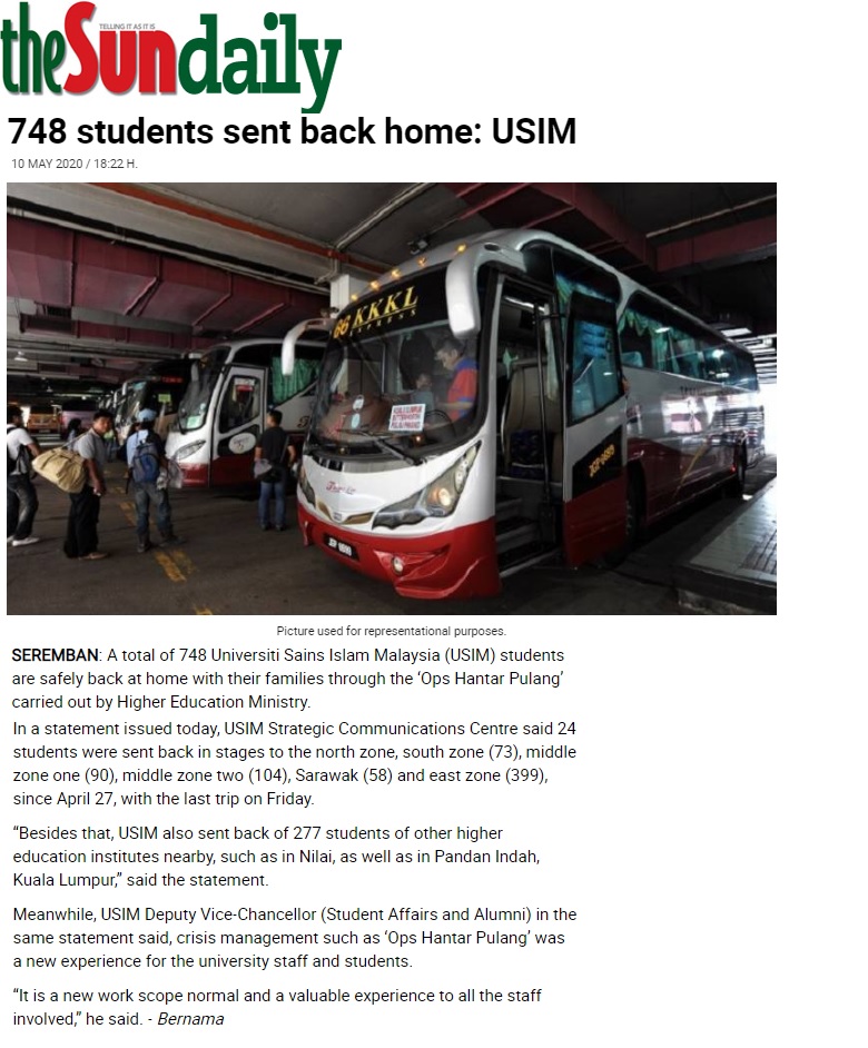 748 Students Sent Back Home ; USIM