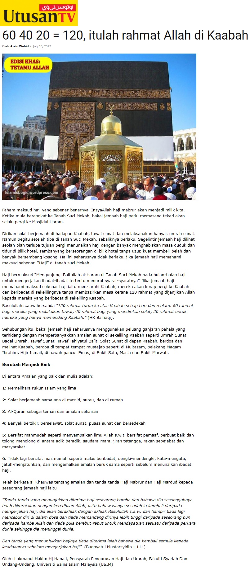 60 40 20 = 120 Itulah Rahmat Allah Di Kaabah