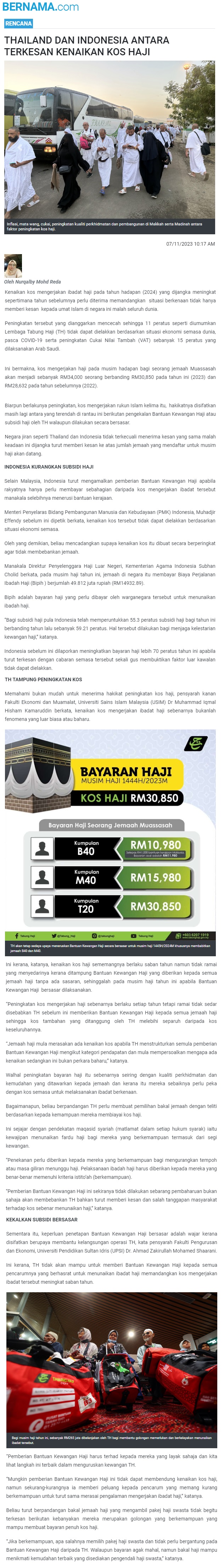 Thailand dan Indonesia antara terkesan kenaikan kos haji