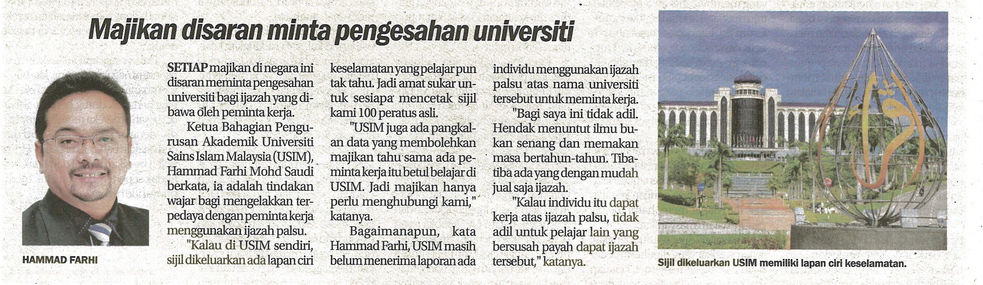 Majikan Disaran Minta Pengesahan Universiti