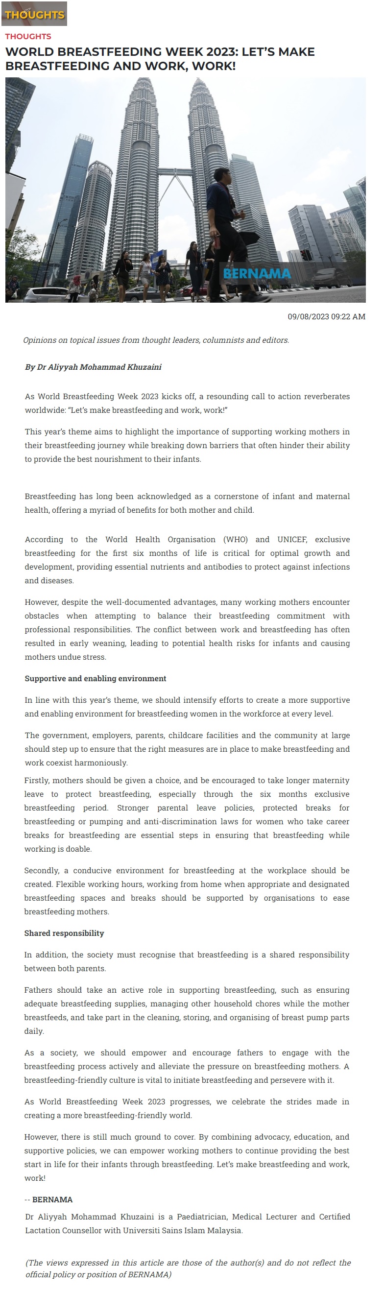 World breastfeeding week 2023 : let's make breastfeeding and work, work!