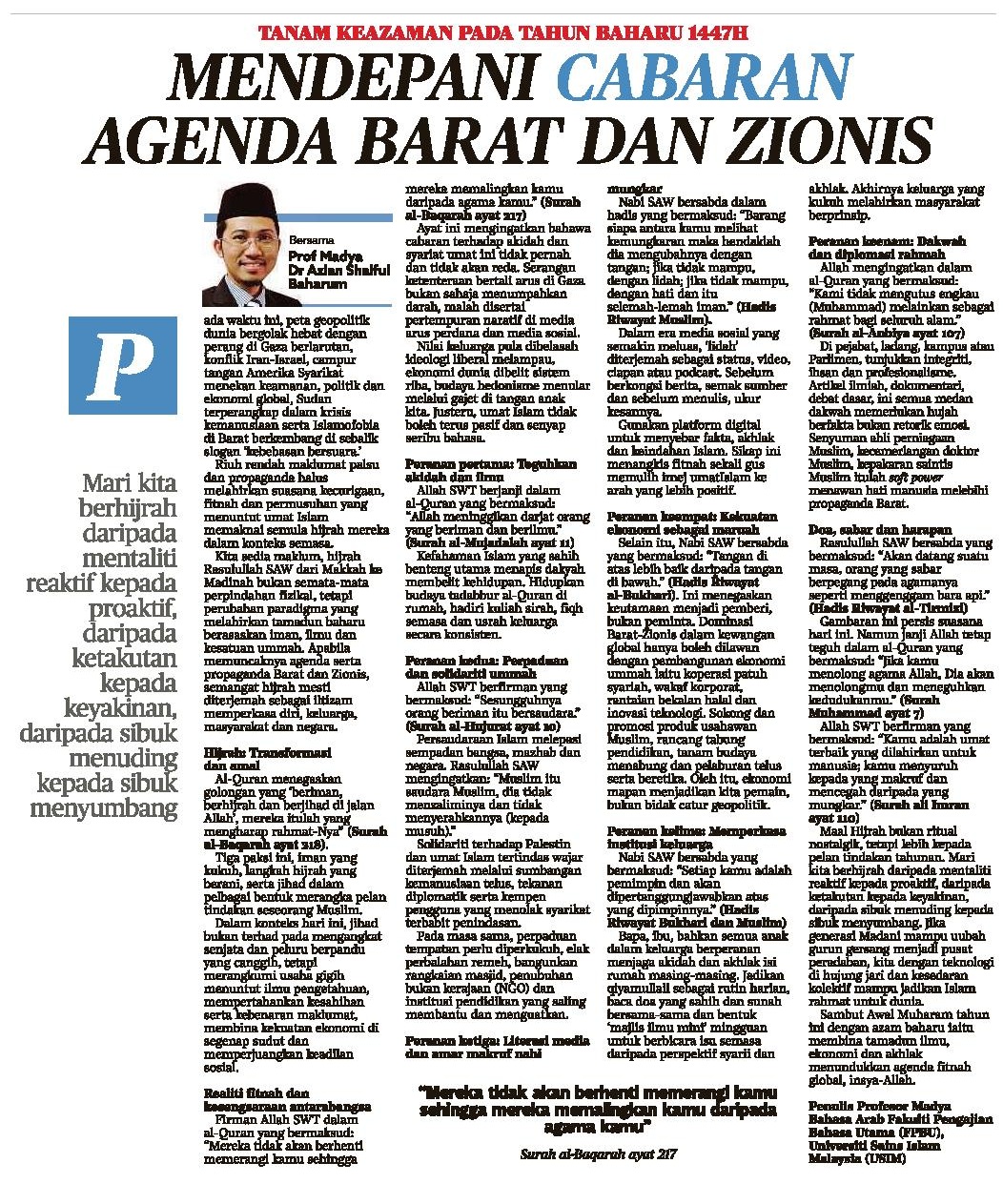 Tanam keazaman pada tahun baharu 1447H mendepani cabaran agenda barat dan zionis