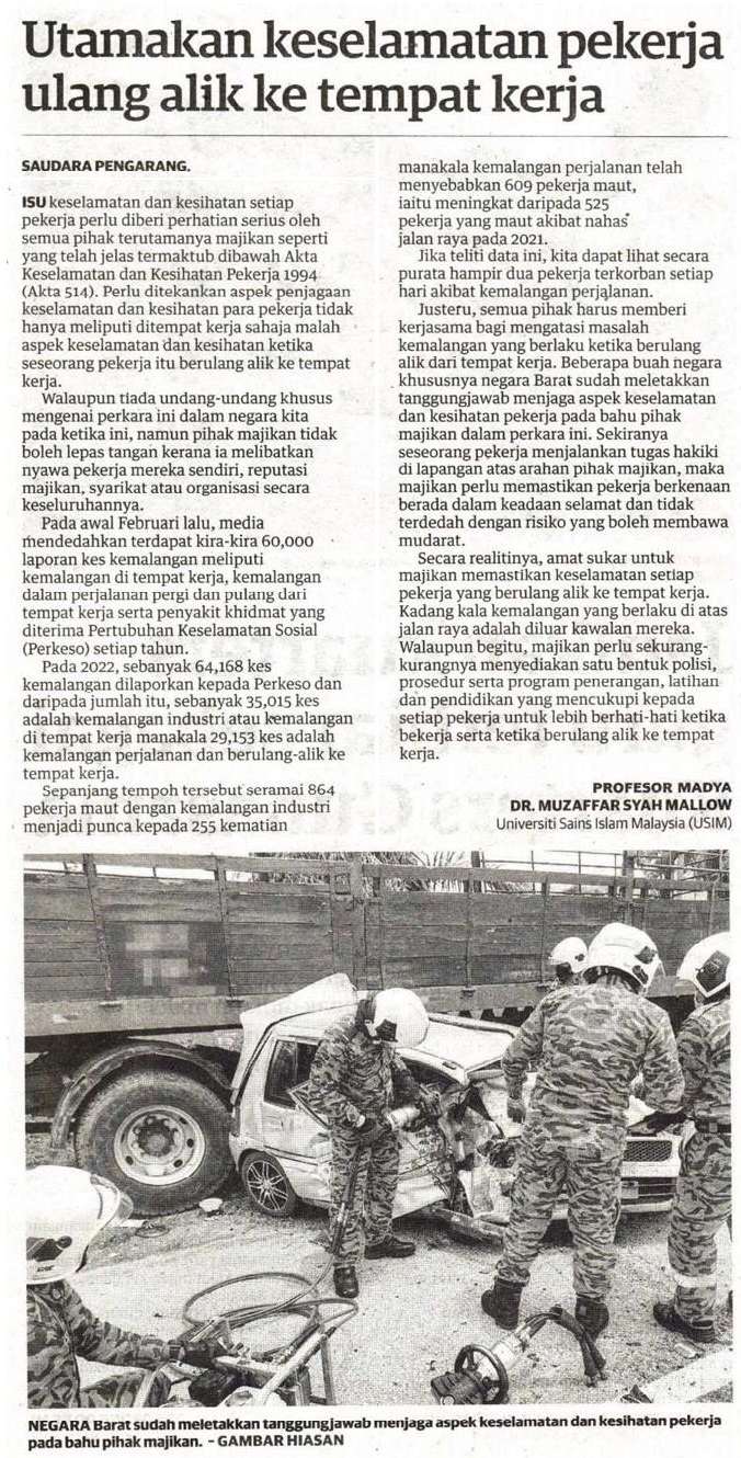 Utamakan keselamatan pekerja ulang alik ke tempat kerja