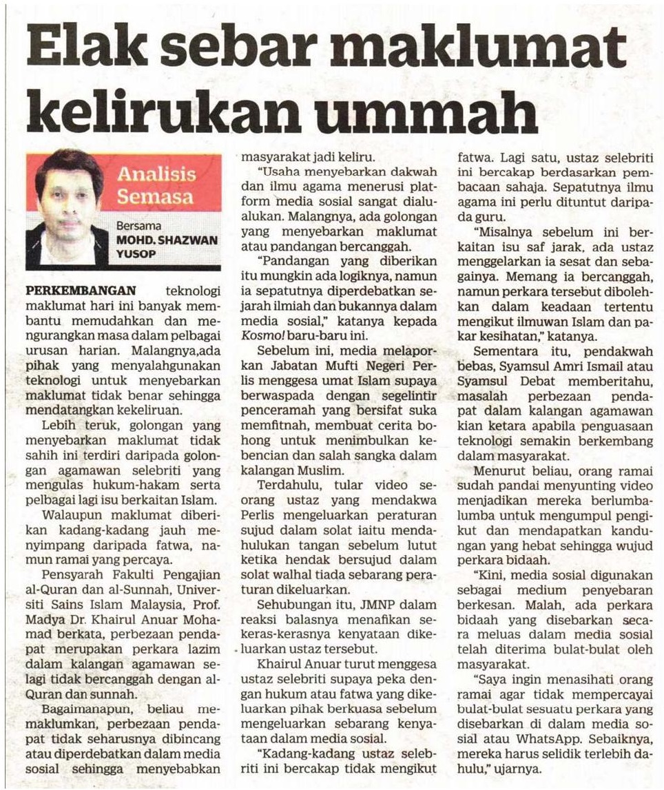 Elak Sebar Maklumat Kelirukan Ummah