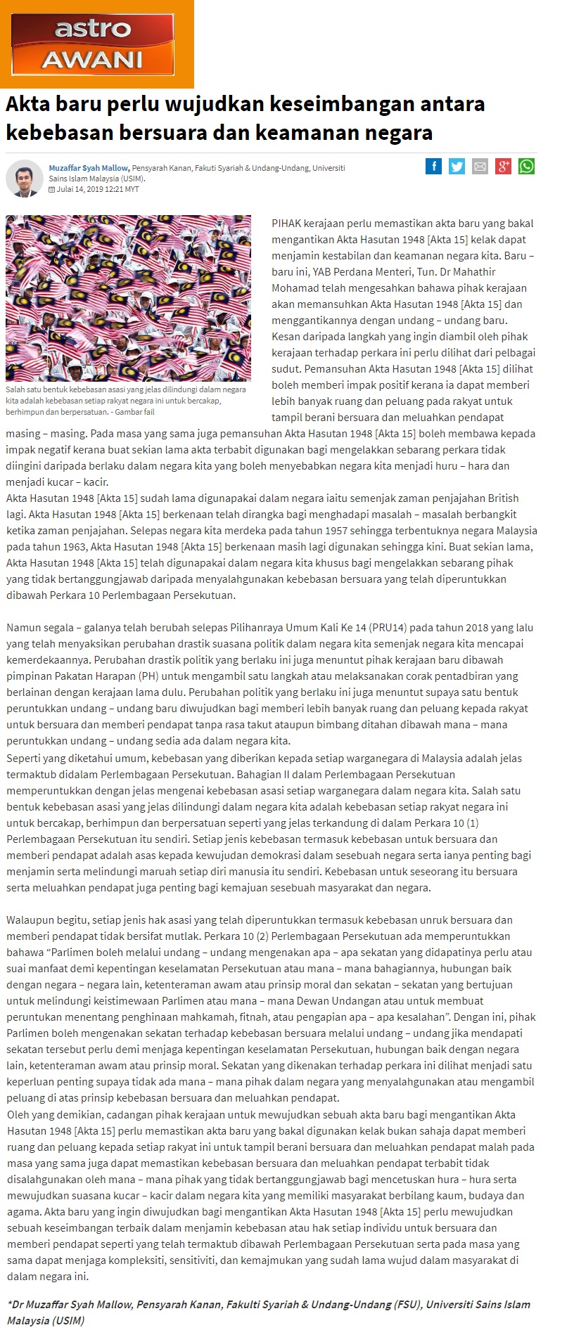 Akta Baru Perlu Wujudkan Keseimbangan Antara Kebebasan Bersuara Dan Keamanan Negara